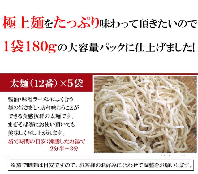 - 麺好きでいろいろな製麺所から麺を注文しています こちらの麺は喜多方風のふとちぢれ麺 噛むと小麦の味や風味も楽しめる コシもあり美味しいです。 ただ麺5袋で1000円は少しコスパが高いので☆1マイナスに...