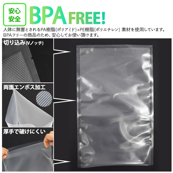 真空パック専用袋 Lサイズ 20枚セット 25×40cm 両面エンボス加工 保存バッグ 小分け袋 袋のまま 冷蔵 冷凍 ボイル可能 BPAフリー