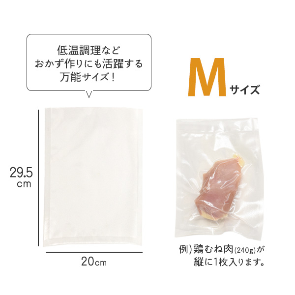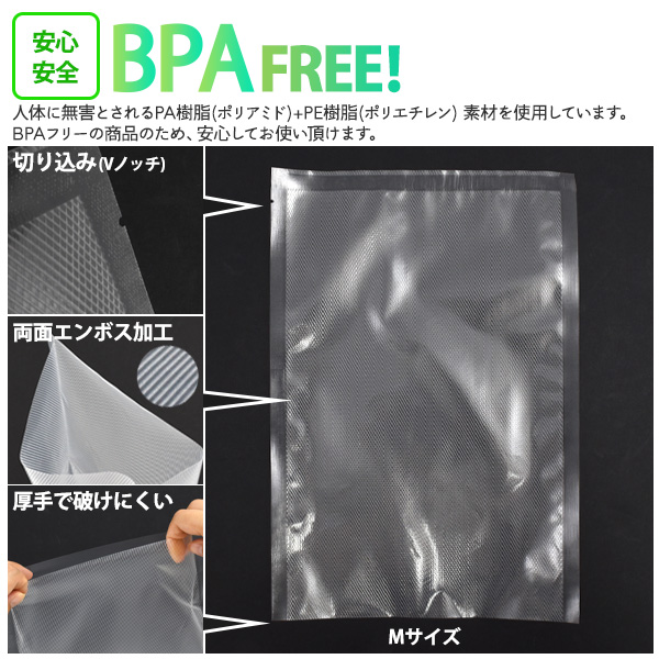 ※お手持ちの真空パック機がエンボス加工(表面凹凸)の真空袋やロールに対して、非対応(使用不可)の場合、本製品はご使用頂けません。お手持ちの真空パック機が対応しているかをご確認の上、お買い求めください。※真空パック機は付属しません。※湯せんの際は袋が直接鍋にふれると溶ける恐れがございます。袋全体をお湯の中に入れて湯せんして下さい。※中身の食品によって、長時間湯せんすると袋が破裂する恐れがあります。ご注意ください。※圧力鍋と合わせてのご使用は出来ません。※突起状のものを入れると袋が破ける恐れがあります。ご注意ください。