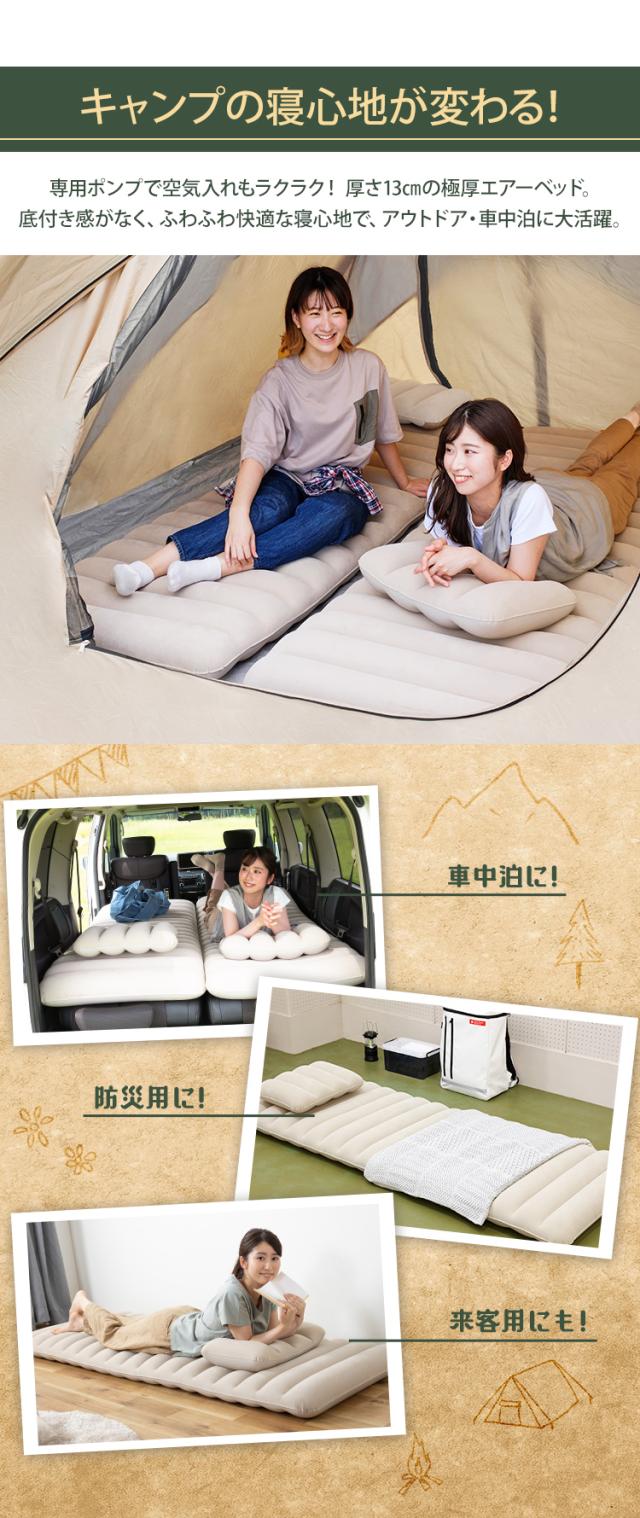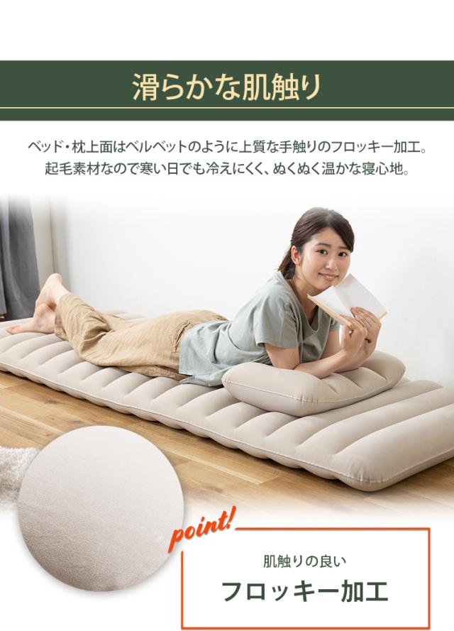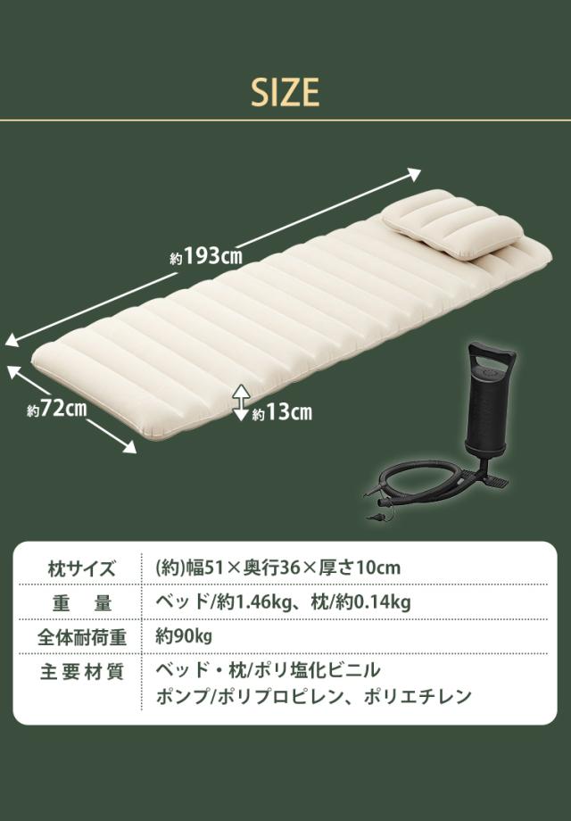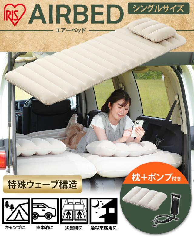 エアーベッド 簡易ベッド シングル 1人用 ABD-1NTP ベージュ ベッド エアーベッド 折りたたみ 収納 コンパクト 枕付き ポンプ付き 防災 アウトドア キャンプ レジャー 車中泊 来客 アイリスオーヤマ