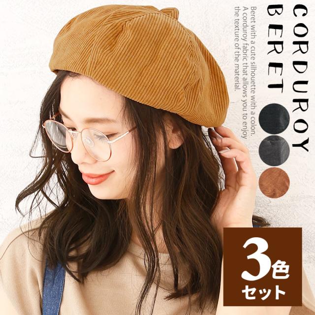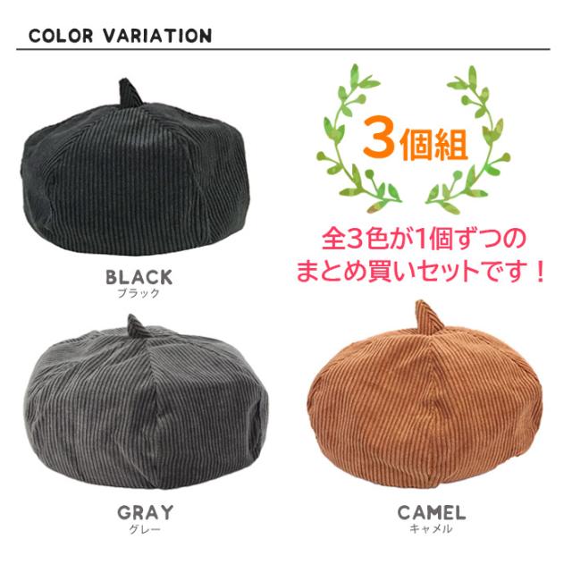 3色セット 秋冬 ベレー帽 レディース コーデュロイ 生地 ベレー ゆったり 帽子 3個セット (ar-BECD-3set) 【メール便送料無料】 ハット おしゃれ Lulu&berry ベレー帽 カジュアル かわいい 軽量 女の子 メンズ ナチュラル サーモベレー キャメル 黒 グレー agesugi_sfa