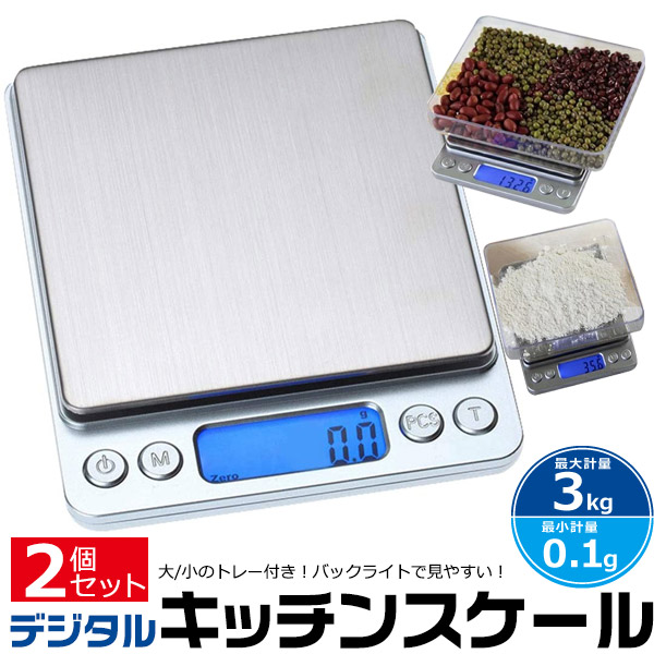 キッチンスケール 2個セット 計り デジタル クッキングスケール 0.1g単位 最大3kg トレー付 料理 お菓子作り デジタルスケール 送料無料 はかり 秤 計量 計量器 測り 安い 測り器 電子秤 料理用はかり 調理用 一人暮らし 新生活 小型 スリム シンプルデザイン キッチン