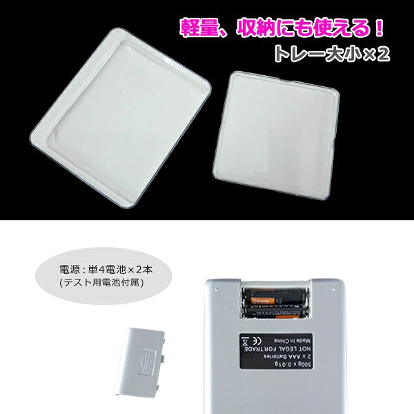 本体×1個、トレー大小×2個、単4電池×2本※テスト用電池、取扱説明書