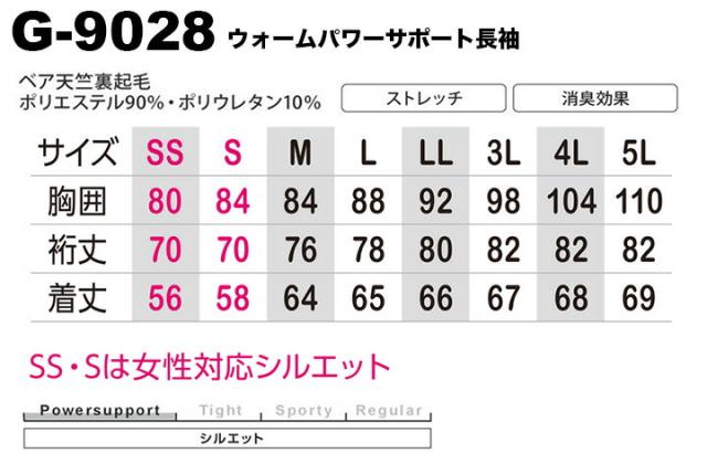 【即日発送】インナーシャツ 長袖 ウォームパワーサポート コーコス G-9028 男女兼用 メンズ レディース コンプレッション ストレッチ 消臭 裏起毛 秋冬 スポーツ 作業服 作業着 CO-COS【SS-3L】【送料無料】
