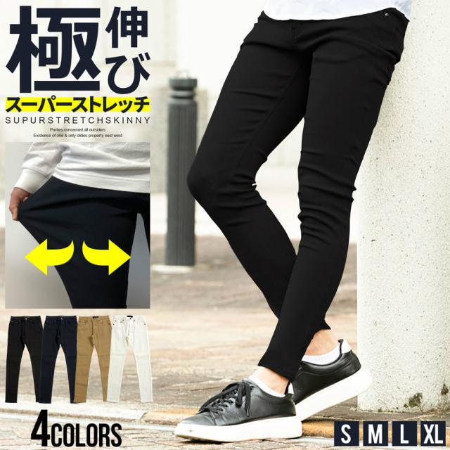 スキニーパンツ メンズ ボトムス チノパンツ スーパーストレッチ 無地 定番 ベーシック 美脚 細身 タイト レーヨン ナイロン ブラック ホワイト ネイビー ベージュ 黒 白 紺 S M L XL カジュアル Vicci ビッチ 即日発送 [VITN21-03]