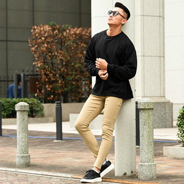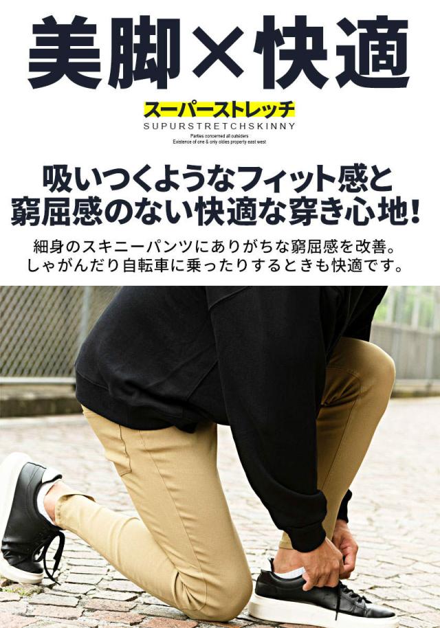 驚くほど良く伸びるストレッチ素材を使用したスキニーパンツ。