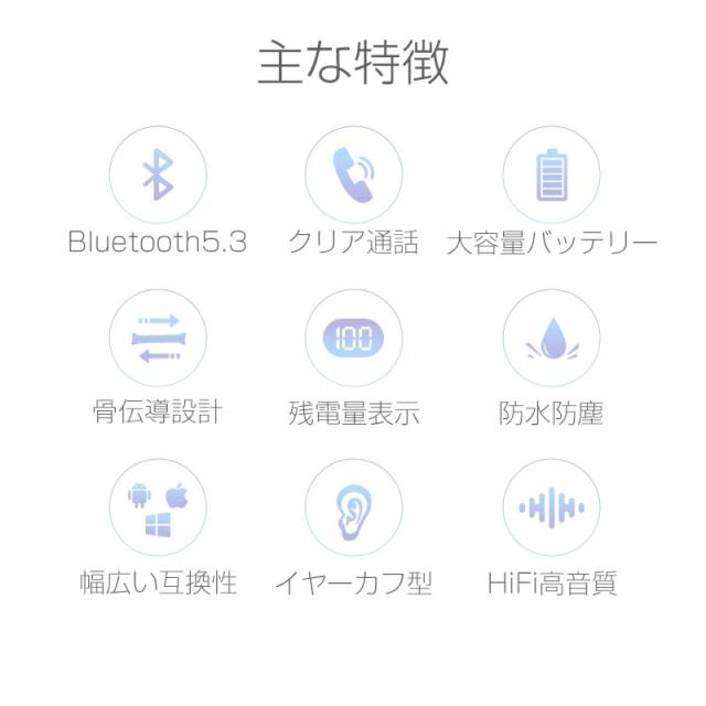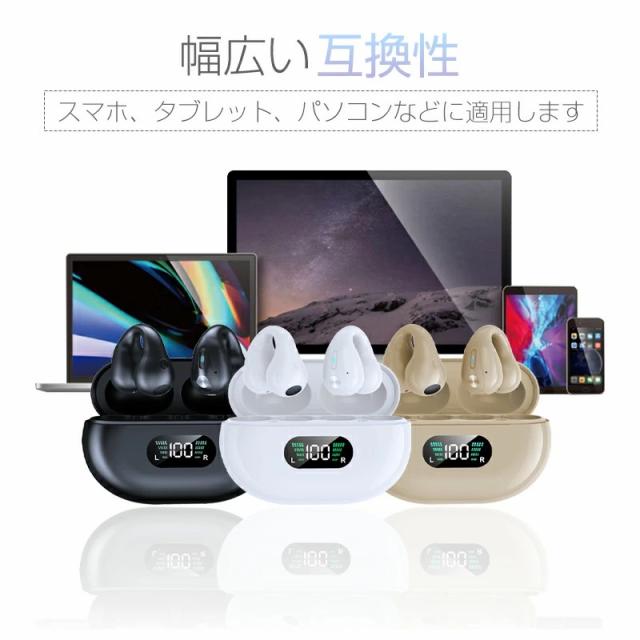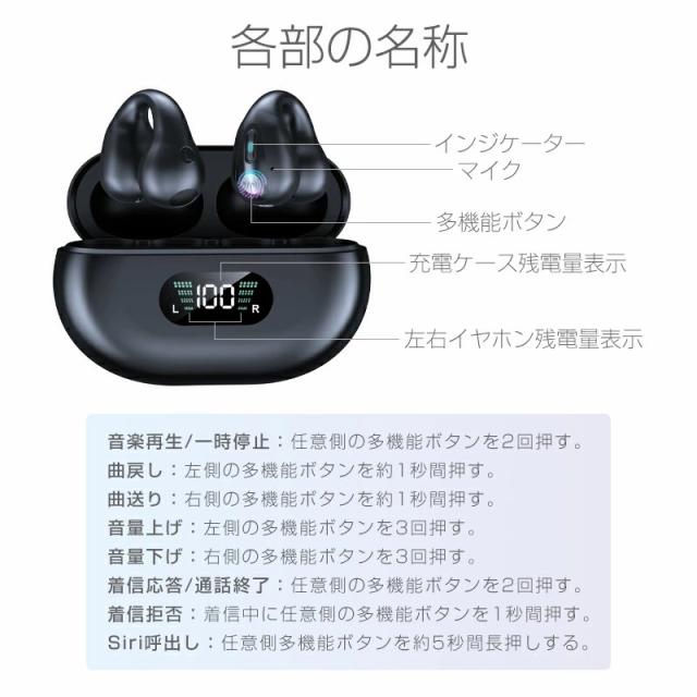 ワイヤレスイヤホン イヤホン ワイヤレスイヤホン Bluetooth5.3 骨伝導 イヤホン クリップ 耳を塞がない イヤカフ型 片耳 両耳 イヤホン 高音質 ノイズ低減 長時間再生 マイク内蔵 耳に挟む 通話対応