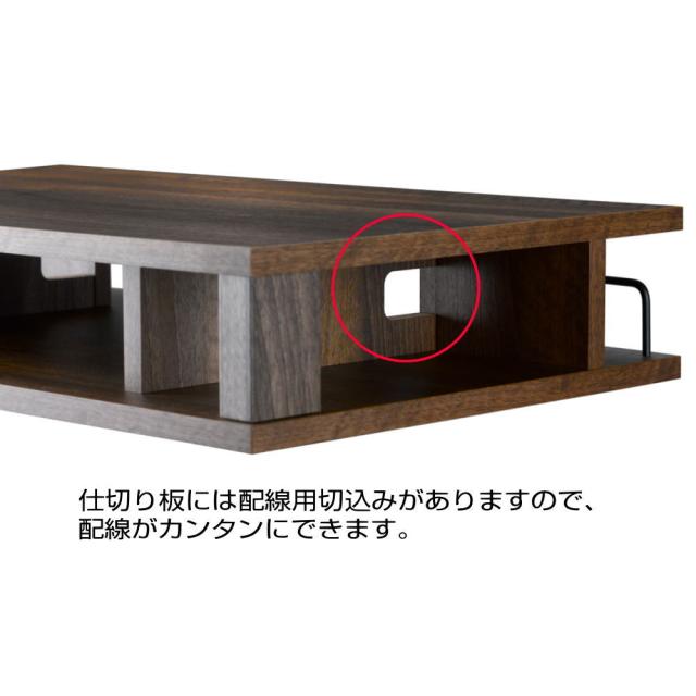 真ん中の収納部は背面が空いているのでAV機器やパソコンキーボードなどを置いていただくのに便利です。