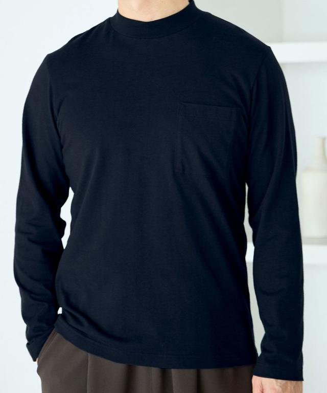 [keyword] メンズファッション 標準サイズ 普通サイズ 大きいサイズ ゆったりサイズ プラスサイズ 標準 普通 長袖 おしゃれ 綿100% 素材 [comment] 胸元にポケットが付いた着回し力抜群のハイネックネックTシャツ。
