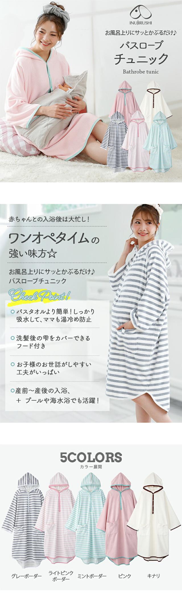 犬印 バスローブ レディース マタニティ 薄手 タオル生地 妊婦 妊娠中 赤ちゃん 産前 産後 臨月 ボーダー 無地 授乳口付き 犬印本舗 2008701 バスタオル