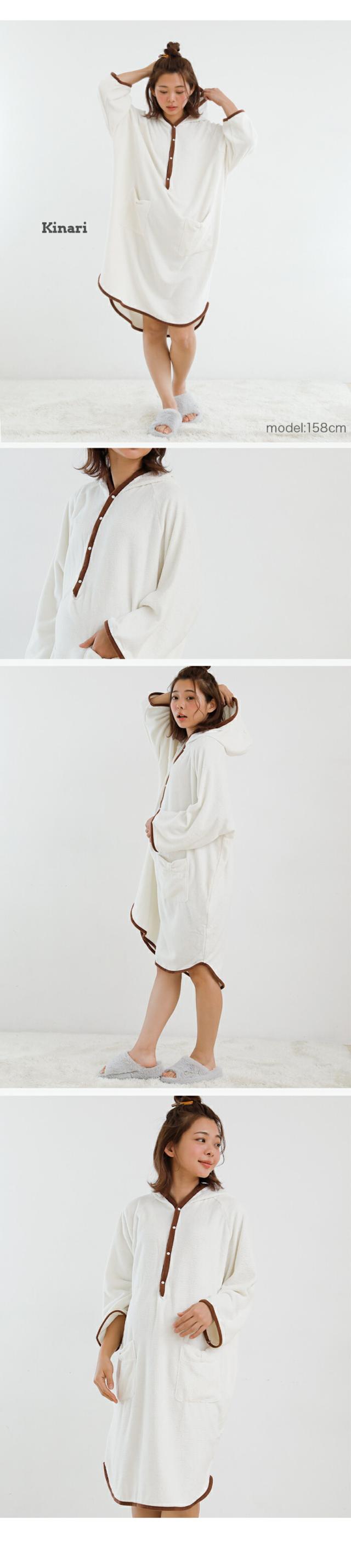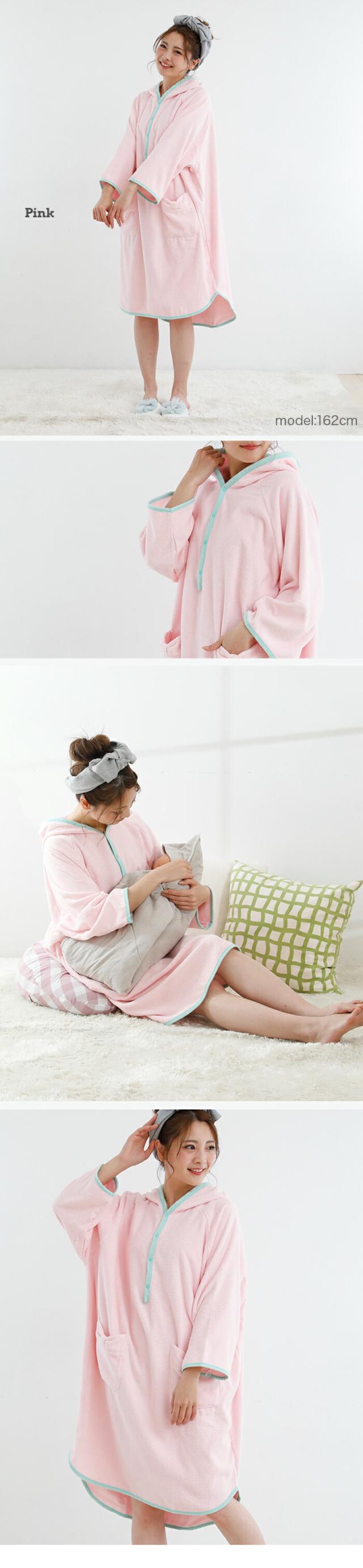 洗髪後の雫をカバーできる大きめのフード付きで、雫がぼたぼた落ちにくいようになっています。