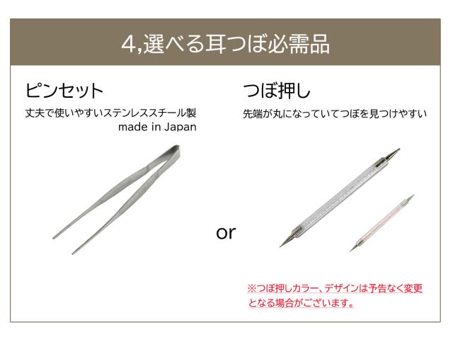 【内容量】耳つぼシール60粒、脱脂綿2包、耳つぼ解説図1枚、ピンセットまたはつぼ押しどちらか1点