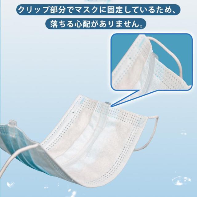装着方法は写真の様に本製品のスリット部をマスクの両端に差し込んでください。