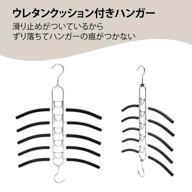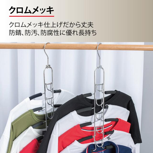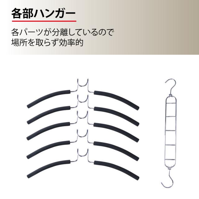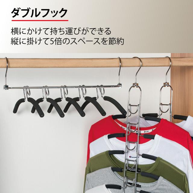 5段フックハンガーで縦に掛けて省スペースを実現。