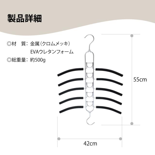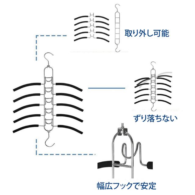 ハンガー すべらない ハンガーラック 5段 ダブルフック 多機能ハンガー 省スペース 衣類ハンガー 便利グッズ magic-hg02