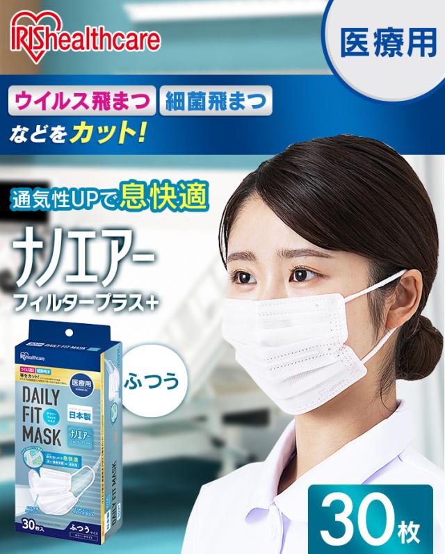 マスク 医療用マスク サージカルマスク JIS T9001医療用マスク クラスI 医療用デイリーフィットマスク ナノエアーフィルタープラス ふつうサイズ 30枚入 SPN-DNI30L ホワイト マスク 予防 ウイルス 飛沫 飛まつ 風邪 ハウスダスト 花粉 ほこり アイリスオーヤマ