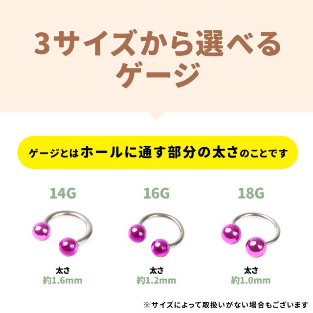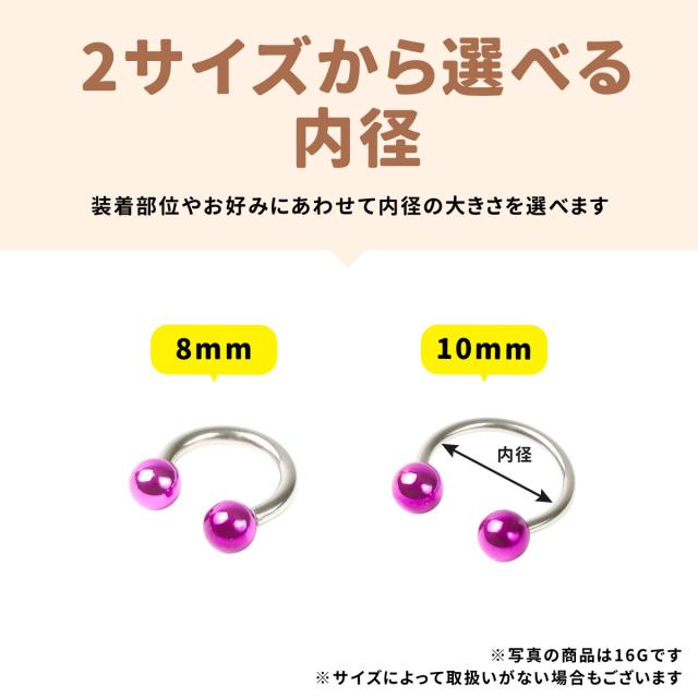 太さ14G,16G,18G 内径8mm〜10mmのサーキュラーバーベルです。