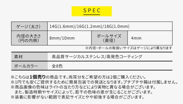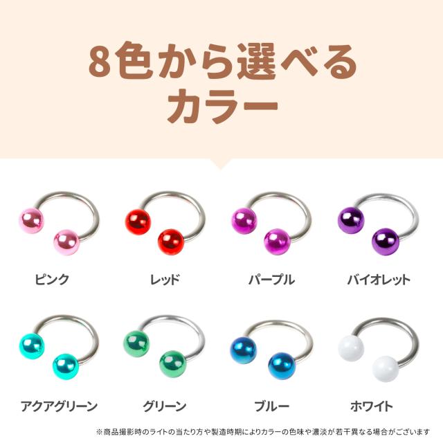カラフル キャッチ サーキュラーバーベル 14G 16G 18G サージカルステンレス イヤーロブ ヘリックス トラガス 軟骨ピアス ボディピアス カラー