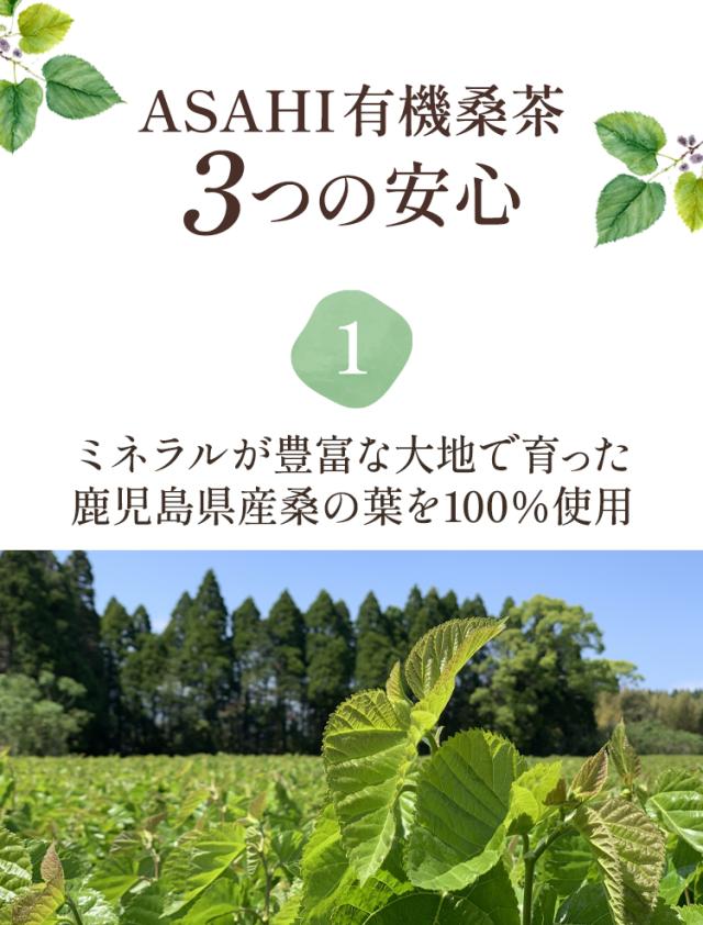 | ミネラルが豊富な大地で育った鹿児島県産桑の葉を100%使用。 |