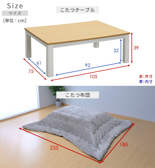 | 商品説明 | ●【こたつ本体】 ●電源:100V (50Hz/60Hz) ●ヒーター型番:MS-303H ●消費電力:300W ●電気代目安(1時間あたり):(強)5.0円、(弱)2.5円 ※電力料金目安単価1kWhあたり31円(税込)で算出 ●電源コード:中間入切スイッチ ●電源コード長さ:3m ●メーカー保証:1年 【こたつ布団】 ●さらふわな肌触りのフランネル生地を両面に使用 ●ほこりの出にくい、ポリエステル綿をたっぷり1.8kg ●取っ手付き収納袋付きでオフシーズンもコンパクトに収納 ●無地柄はリバーシブルで使用可能 ●※圧縮状態でお届けします。開封後、およそ1日ほどで復元します。 ●2024年8月より布団セットの販売ページに変更しています。 |