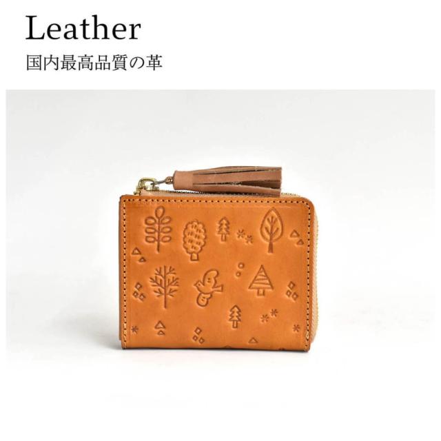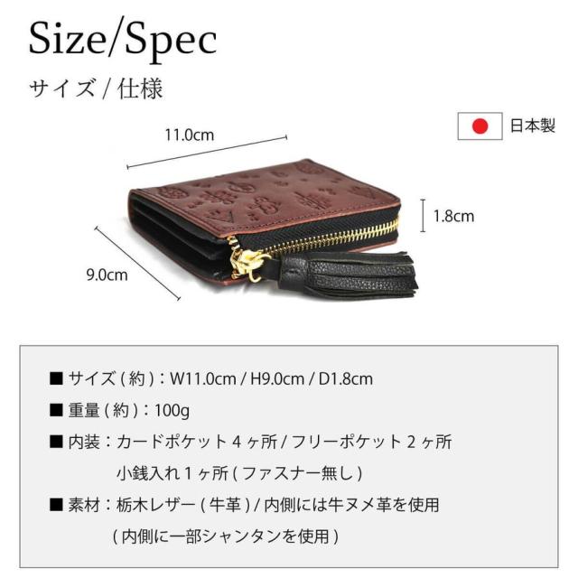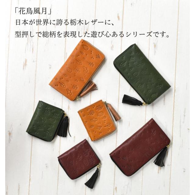 栃木レザー 花鳥風月 ミニ財布 L字ファスナー レディース メンズ コンパクト 小さい 総柄 型押し 日本製 国産 お洒落 可愛い 財布 ブランド ハレルヤ ラッピング ギフト プレゼント