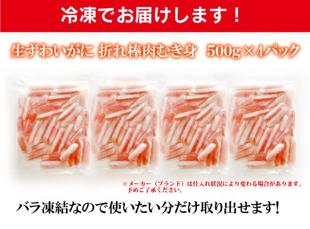 商品内容 :生ずわいがに折棒肉 総重量2kg 【総重量500g(内容量375g)×4入】