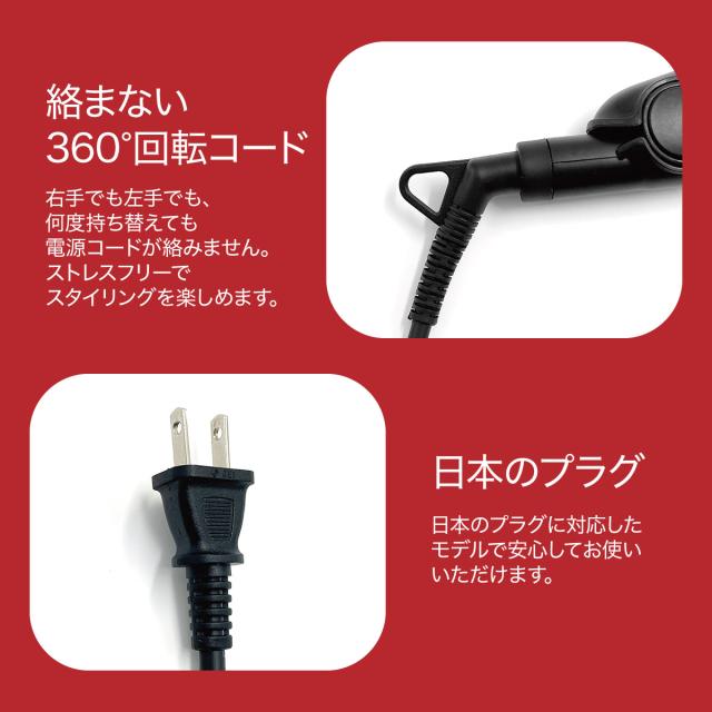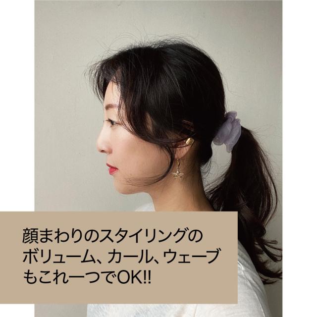 ストレート、Cカール、波ウェーブ、Sカールはもちろんのこと簡単な前髪のアレンジ、根元のボリュームなど多様なスタイルをつくることができます。