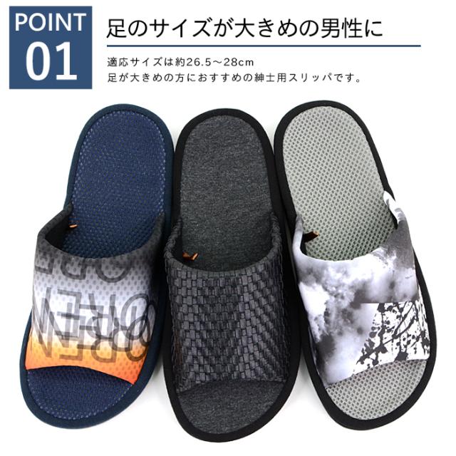 適応サイズ約26.5〜28cmの足が大きめの方におすすめな紳士用スリッパ。