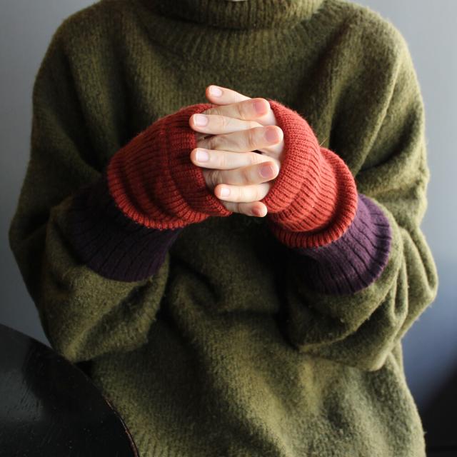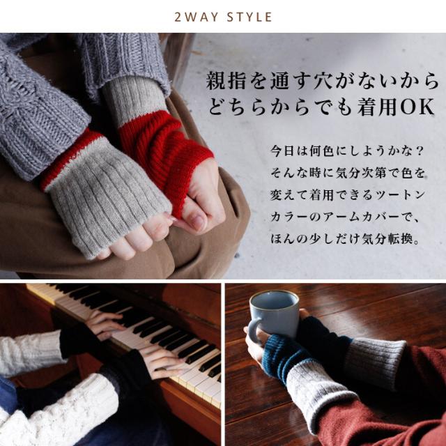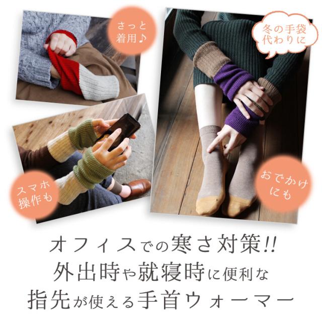 日本製 こだわり 2WAY アームウォーマー シルク ウール ハンドウォーマー スマホ手袋 指なし 手袋 アームカバー おしゃれ (mm-ha0311)メール便【送料200】 バイカラー アンゴラ レディース 秋冬 春 防寒 防湿 あったか 大人 かわいい 上下どちらでも使えます agesugi_sfa