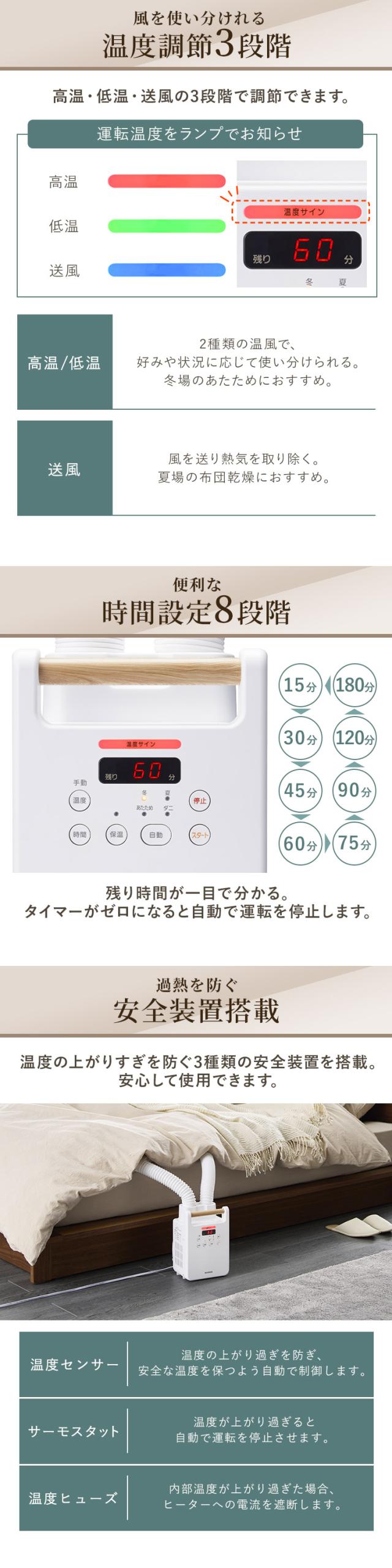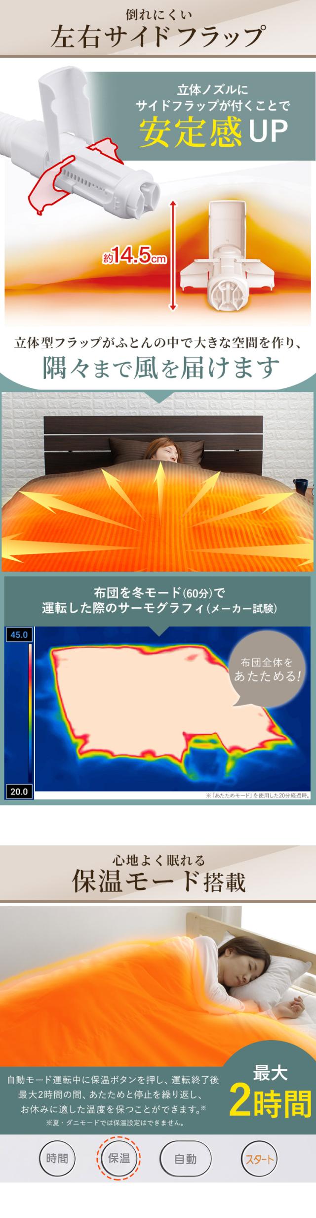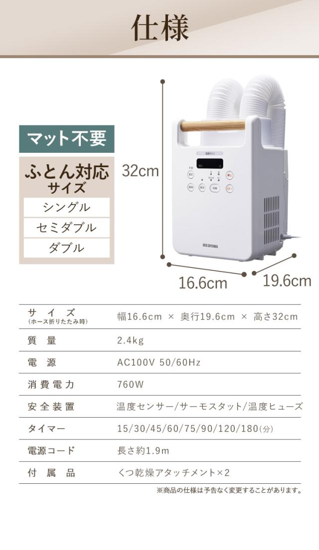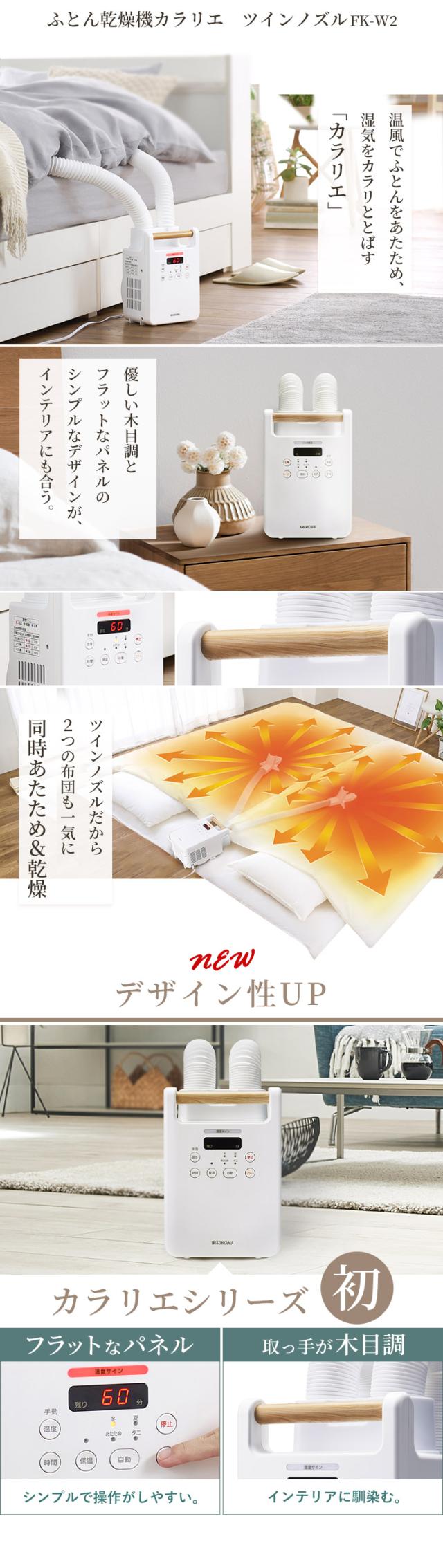 布団乾燥機 アイリスオーヤマ ダニモード ダニ 対策 ツインノズル 小型 軽量 コンパクト 布団 汗 湿気 送風 夏モード 靴乾燥 2足同時乾燥 梅雨 花粉 保温 あたため オールシーズン タイマー付 マット不要 ふとん乾燥機 カラリエ FK-W2-W *