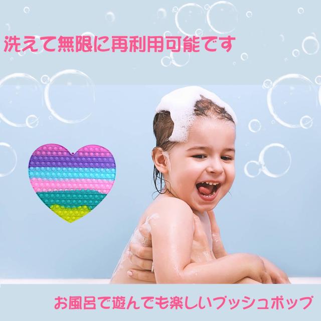 ●柔らかいゴム素材なので、小さなお子様が遊んでも、ケガをしずらいプッシュポップバブル、お風呂で遊んでも楽しい減圧おもちゃです。