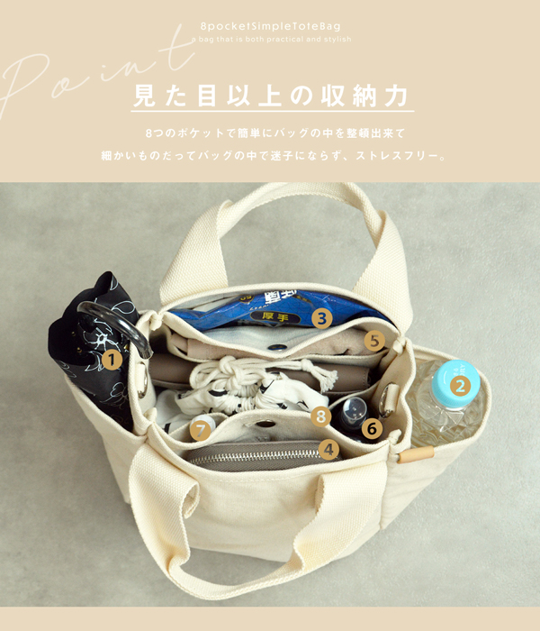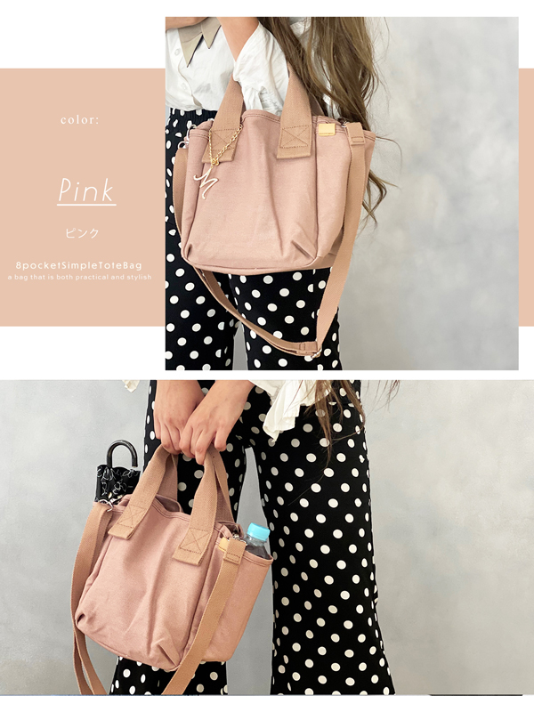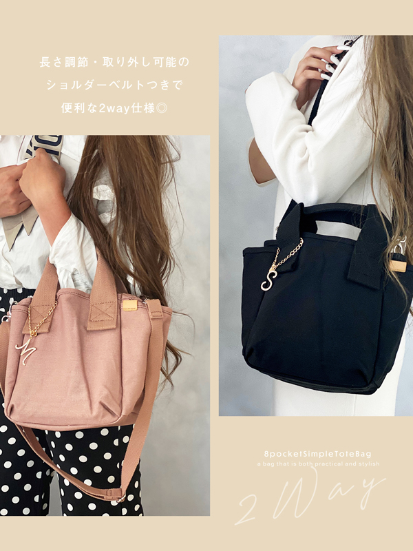 8つのポケットでスッキリ収納できるショルダートートバッグ。
