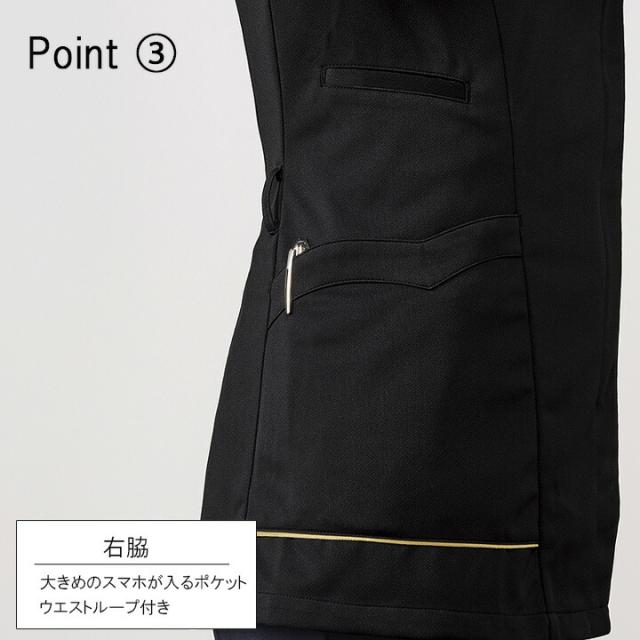 ■仕様:左胸ポケット、両脇ポケット、右脇スマホポケット、ウエストループ付き