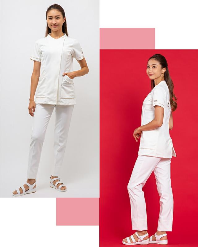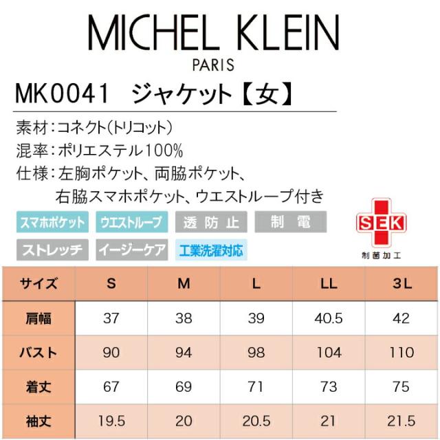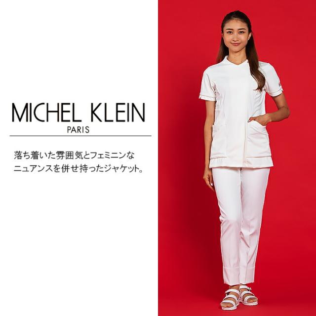 MICEL KLEIN スクラブ 医療 白衣 ジャケット ファスナースクラブ 半袖 エステ服 女性用 mk-0041 ミッシェルクラン ストレッチ 透け防止 制電 ストレッチ おしゃれ 病院 医師 歯科医 チトセ【送料無料】 おしゃれ 可愛い シンプル