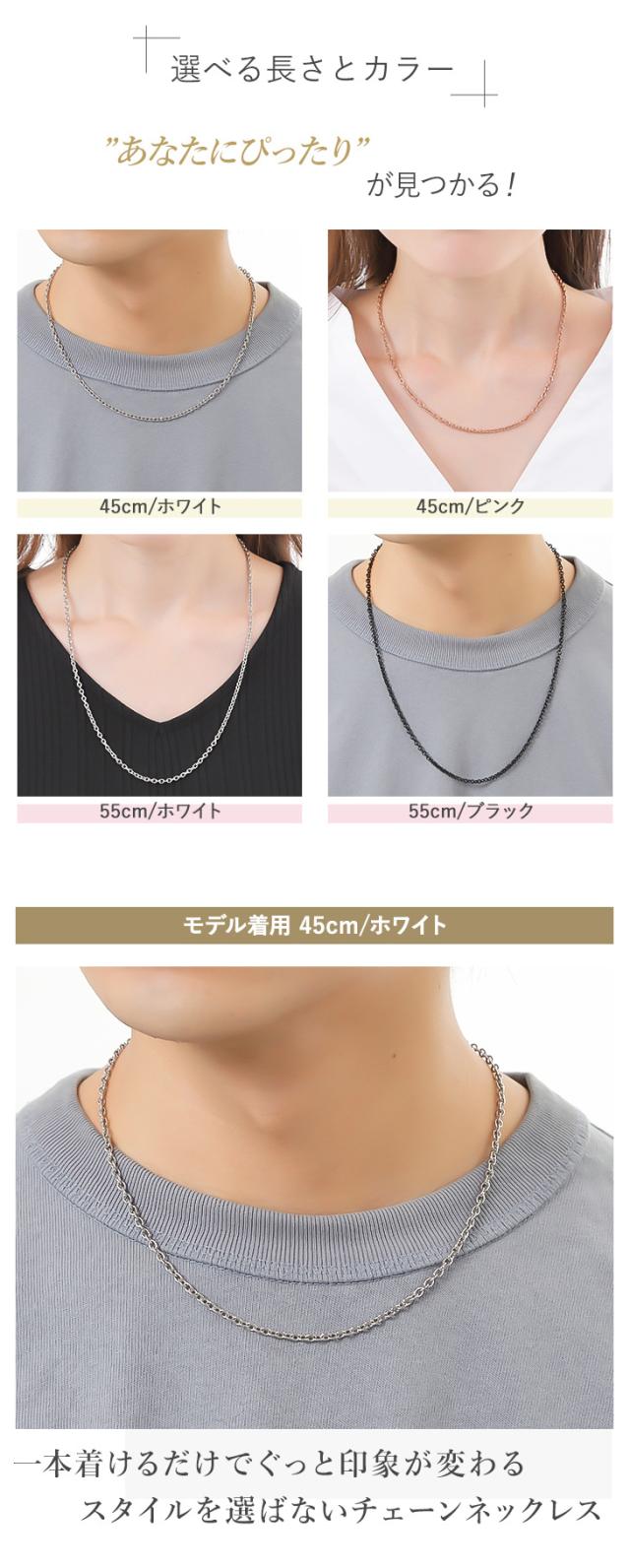 ●スペック【45cm/ホワイト/ピンク】全長約45.0cm(約2.5cm/5.0cm箇所にアジャスター管付き)最大幅:約3.0mm 最大厚み:約0.6mm留金(フィッシャーフック)約9.5mm【55cm/ホワイト/ブラック】全長約55.0cm(約2.5cm/5.0cm箇所にアジャスター管付き)最大幅:約3.0mm 最大厚み:約0.6mm留金(フィッシャーフック)約9.5mm※チェーンのコマの関係で長さ(全長)に±0.5cmから1.0cmの誤差が出る場合がありますのでご了承ください。【どんな装いにもピッタリ】シンプルなチェーンは女性だけでなく男性にもおすすめです。アジャスターで長さ調節も可能で流行りのレイヤードでの装いにも最適です。【専用ポーチ付き】ご自身へのご褒美や彼女や奥様に、男性から女性へ大切な想いを伝えるプレゼント・女性へのギフトとしてもおすすめです。嬉しい両耳セット価格のステンレスネックレス。【ジュエリースタジオ プラスターならではのお得なプライスで】またバレンタイン・ホワイトデー・母の日・クリスマス・出産祝いのプレゼント・お嬢様への卒業式や入学式のお祝いなどでも人気の商品です。【ネコポス便】代金引換、時間指定はご利用できませんので予めご了承下さい。