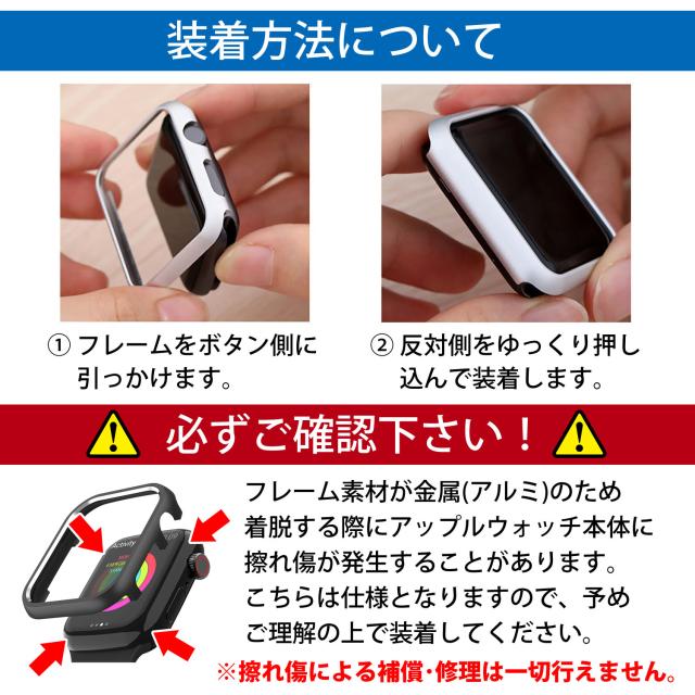※ケース素材が金属(アルミ)のため 着脱する際にアップルウォッチ本体に 擦れ傷が発生することがあります。 こちらは仕様となりますので、予め ご理解の上で装着してください。擦れ傷による補償・修理は一切行えません。