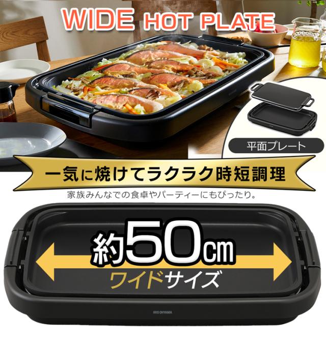 ホットプレート 大型 ワイド 幅約50cm アイリスオーヤマ 3〜4人分 一気に調理 大きい 平面プレート 餃子70個 パンケーキ6枚 大人数 ホームパーティー お手入れ簡単 フッ素加工 ふた付き ワイドホットプレート 1枚 SWHP-011-B キッチン家電 *