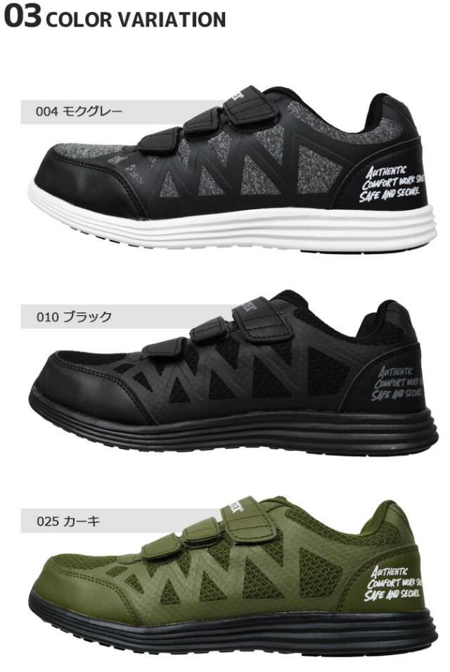 | 素材・仕様 | アッパー:合成皮革+ナイロンメッシュ+TPU(004モクグレーのみ 合成皮革+合成繊維(ポリエステル)+TPU ソール:EVA+熱可塑性ゴム(TPR) インソール:取外し可 先芯:樹脂先芯 靴幅:EEE(3E) 重量:約260g(26.0cm片足) | |||||