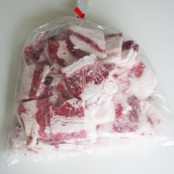 | 当店のスライスは、冷凍のままスライスして解けてしまう前に計量、袋詰めします。 そのため、ご家庭でご利用いただく際には必要分だけを凍ったまま取り出すことができます。 ご利用分だけを冷蔵庫で解凍してからお料理にお使いくださいませ。 |