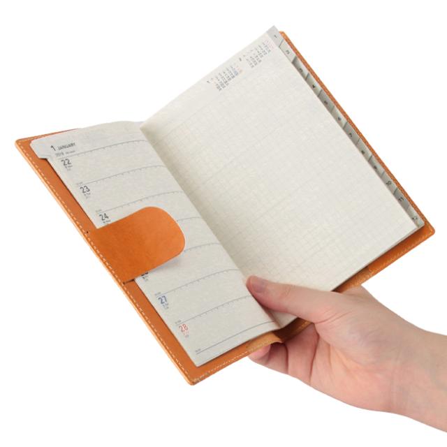手帳・ダイアリー(W128×H182[mm])に装着できるレザーブックカバーです。