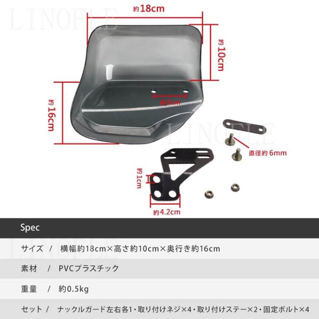 障害物、悪天候から手を守ってくれるナックルガードです。付属のネジで取り付けるだけ!取り付け簡単!