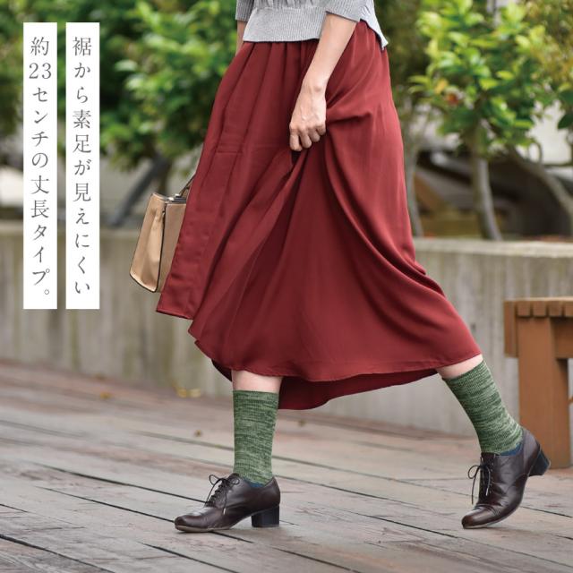 パンツや長めのスカートなら、裾から素足が見えにくい約23cmの丈長タイプです。