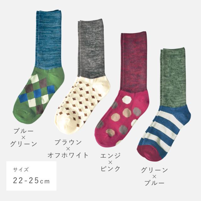 靴下,くつした,くつ下,ソックス,婦人靴下,セット,4足組,クルー丈,ロング,長め,丈長,カジュアル,柄,シック,アーガイル,ドット,水玉,ボーダー,無地,ブルー,青,グリーン,緑,ピンク,ブラウン,茶色,モカ,ホワイト,白,やわらかい,柔らかい,ソフト,肌触り,ソフトタッチ,快適,心地よい,おしゃれ,お洒落,オシャレ,かわいい,可愛い,大人かわいい,大人可愛い,大人女子,オトナ女子,ベーシック,定番,ヘビロテ,ファッション,コーディネート,普段使い,デイリーユース,おすすめ,素材,生地,気持ちいい,秋,冬,ぽかぽか,ポカポカ,暖かい,暖か,あたたかい,あったか,あったかグッズ,温め,温活,防寒,冷え症,冷え性,対策,グッズ,冷え対策,寒さ対策,冷え取り,冷えとり,防寒グッズ,冷え,秋冬,真冬,ギフト,プレゼント,プチギフト,贈り物,祝い,誕生日,誕生日プレゼント,クリスマス,敬老の日,大人,大人用,レディース,女性,女性用,婦人用,ミセス,ウィメンズ,婦人,家族,ファミリー,お出かけ,外出,旅行,洗い替え,カジュアル,小物,コーディネート,22cm,22センチ,23cm,23センチ,24cm,24センチ,25cm,25センチ,22-25cm,