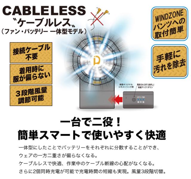 【空調服】パワーファン ケーブルレス バッテリー一体型 9958 CAVO USB ケーブル充電器セット 9954 春夏 作業服 作業着 熱中症対策 中国産業 電動ファン付き作業服