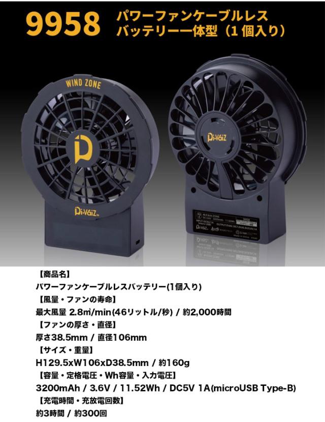 9958 パワーファン ケーブルレス バッテリー一体型(1個)