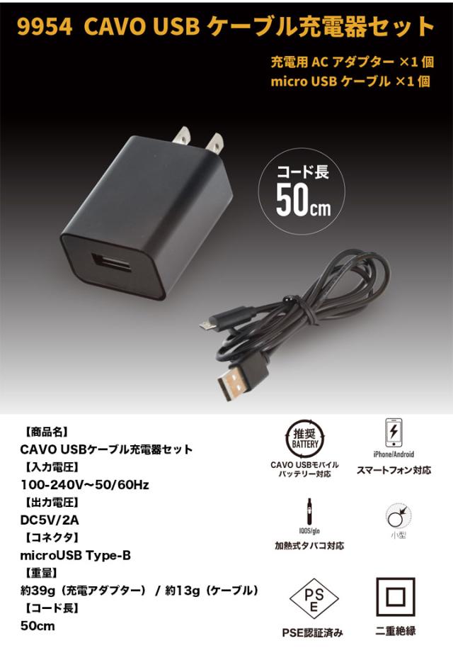 中国産業 パワーファン ケーブルレス バッテリー一体型 9958 & CAVO USB ケーブル充電器セット 9954