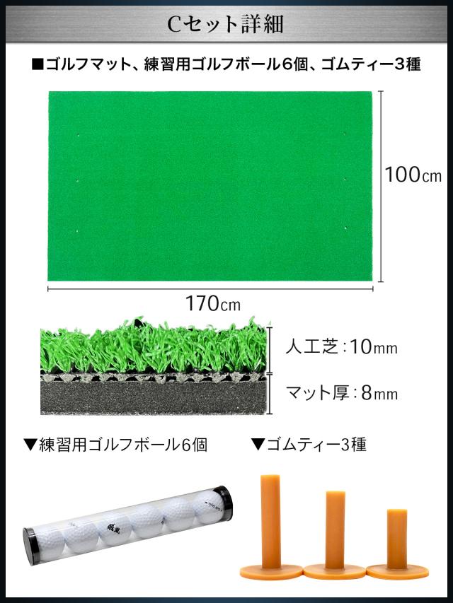 ゴルフマット 大型 100×170cm ゴルフティー ゴルフボール Cセット ゴルフ 練習 マット ドライバー 素振り スイング パター 練習器具 室内 屋外 人工芝 SBR