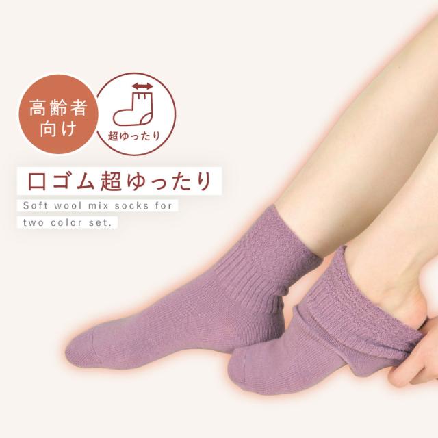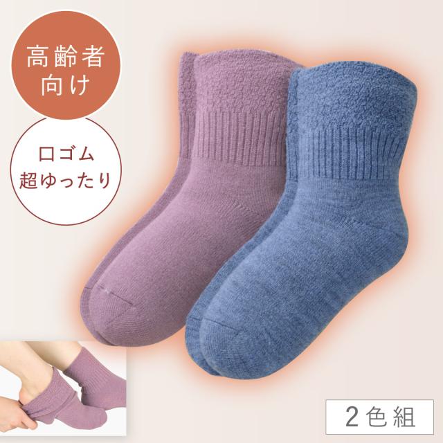 履き口 ゆったり 靴下 レディース シニア 冬 暖かい 【2色組】 22-25cm 着脱簡単 介護 高齢者 のびる 【 口ゴムなし みたいな履き心地 】 足首 ゆるい ゆるめ 口ゴムゆったり 締め付けない むくみ 足のむくみ ふんわりのびのびあったかソックス