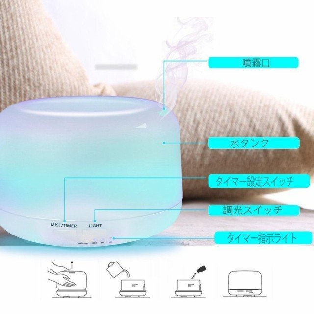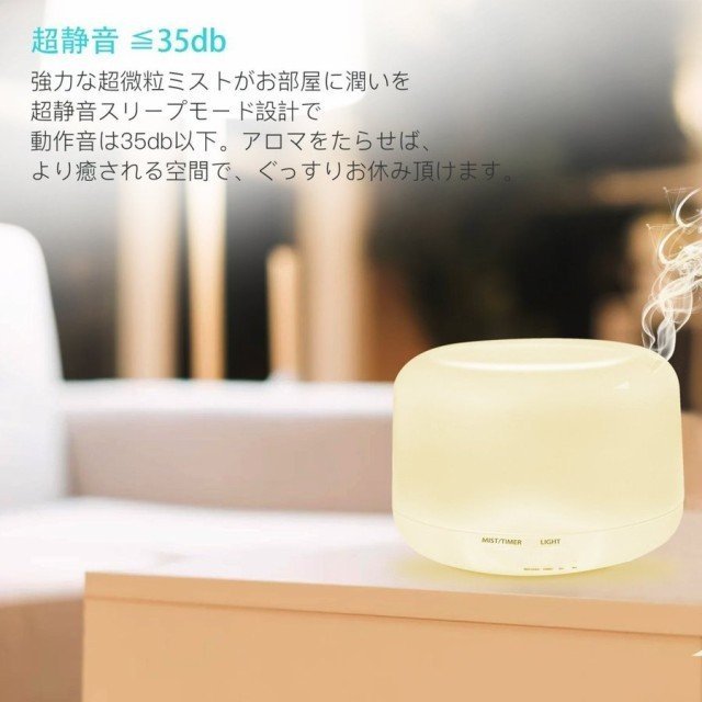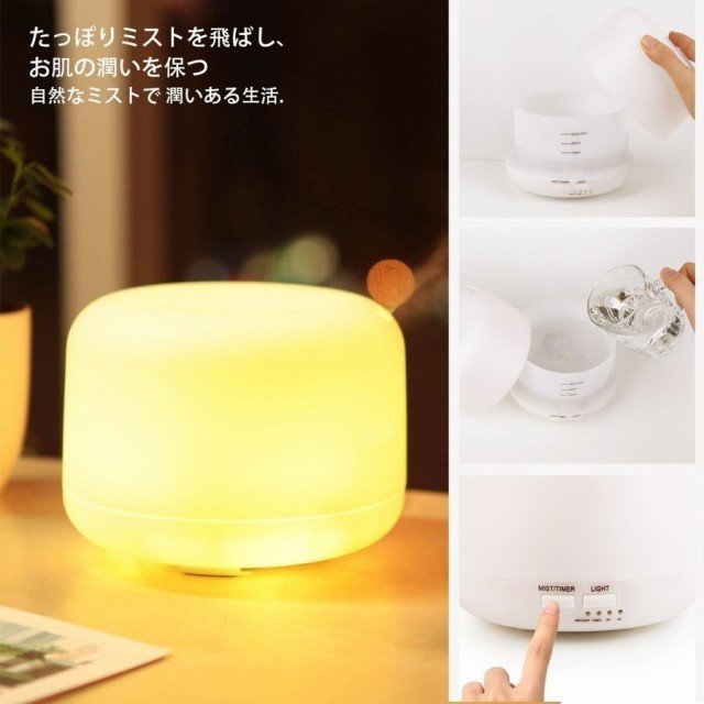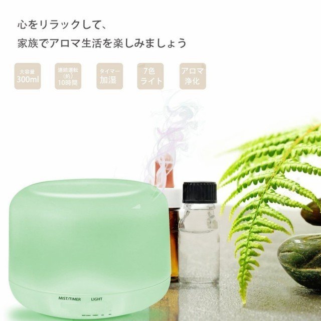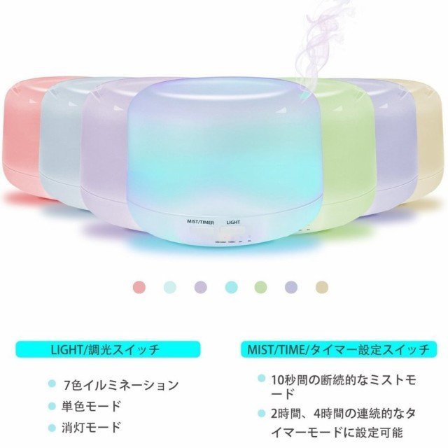 アロマディフューザー 加湿器 超音波式 卓上加湿器 タイマー設定機能 LEDライト付き 空焚き防止機能