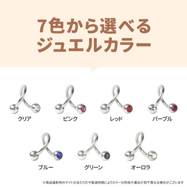 ジェム スパイラルバーベル 14G 16G サージカルステンレス ジルコニア ジュエル イヤーロブ ヘリックス 軟骨ピアス ボディピアス